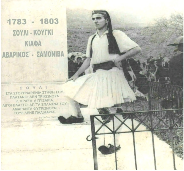 « Η θεατρική παράσταση που παίξαμε στο Δημοτικό Σχολείο του Βούλγαρη της Παραμυθιάς, κατά τις εορτές του Σουλίου του 1963, είχε σχέση με την πτώση του Σουλίου και μάλιστα είχε ηχογραφηθεί από την 8η Μεραρχία των Ιωαννίνων. Εγώ, σύμφωνα με το σενάριο του έργου, έπαιζα το ρόλο « του προδότη Πηλιο – Γούση », ενώ η συμμαθήτριά μου Λένη Πάκου, « τη σύζυγό μου ». Θυμάμαι μάλιστα τη σκηνή κατά την οποία, όταν « η σύζυγός μου » έβγαλε την πιστόλα και, αφού με πυροβόλησε πέφτοντας στο δάπεδο « νεκρός », η αδερφή μου που ήταν ανάμεσα στους θεατές, άρχισε να κραυγάζει.