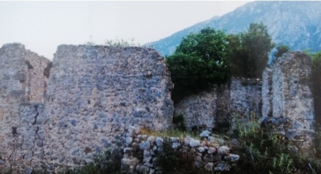 Πιο κάτω από τα ερείπια μιας ερειπωμένης εκκλησίας (σ.σ. της μικρής βυζαντινής εκκλησίας) είναι μερικά άλλα λίθινα θραύσματα ελληνικής αρχιτεκτονικής με ένα καταστραμμένο κεφάλι βοδιού και άλλα λίθινα εντυπωσιακά στολίδια, τα οποία δεν ήταν πολύ παλιά. Αυτά είναι τα μοναδικά υπολείμματα της γλυπτικής … »