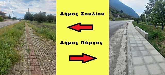 Επειδή οι εικόνες λένε περισσότερα από χιλιάδες λέξεις ενδεικτικά να δούμε ένα πεζοδρόμιο σε χωριό του δήμου Πάργας, του γειτονικού μας δήμου, και συγκεκριμένα στον Βουβοπόταμο και ένα πεζοδρόμιο στον δήμο Σουλίου, στο Προδρόμι.