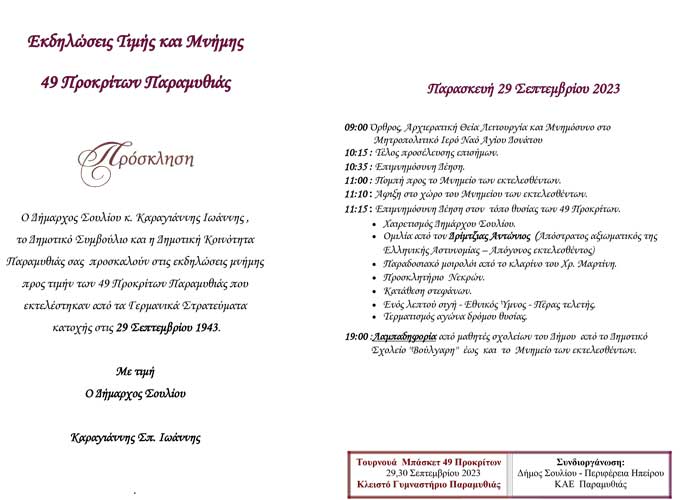 Εκδηλώσεις μνήμης 49 Προκρίτων στην Παραμυθιά