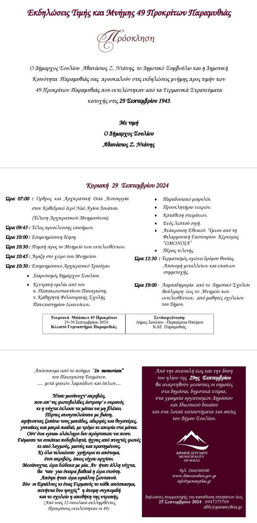 Εκδηλώσεις τιμής 49 Προκρίτων Παραμυθιάς