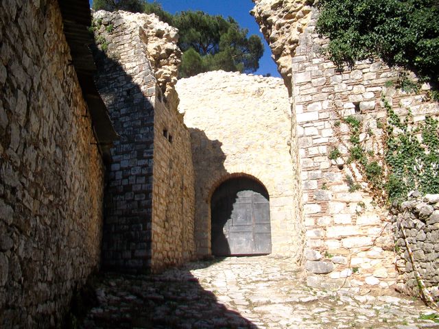 Δυο πύλες εξασφαλίζουν την επικοινωνία. Η πρώτη και κύρια, στο μέσο της δυτικής πλευράς, θα πρέπει να τοποθετηθεί στον 17ο αι. Αντίθετα, η μικρότερη, στο μέσο της νότιας πλευράς, πλαισιωμένη από τους δύο τμηματικά σωζόμενους βυζαντινούς πύργους, λειτουργούσε ως η κεντρική πύλη του γουλά των βυζαντινών, αντικρίζοντας την απέναντι ακρόπολη και ως βοηθητική κατά την περίοδο της οθωμανοκρατίας.