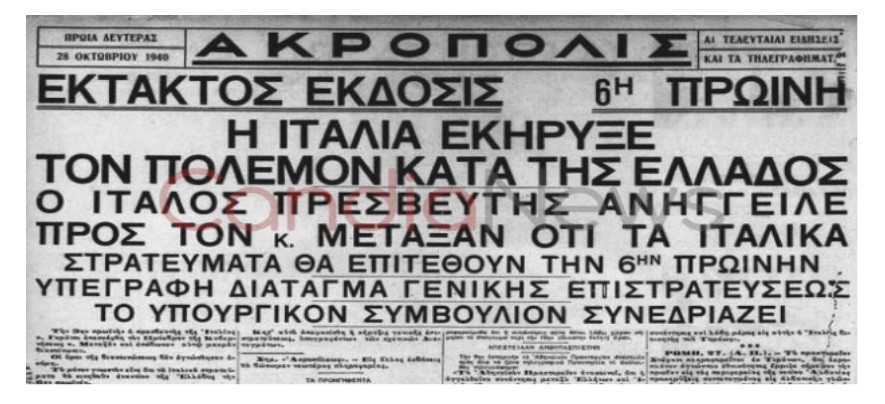 Την 28η Οκτωβρίου 1940, την 03.00 πρωινή, ο ιταλός πρέσβης στη Ελλάδα Grazzi επιδίδει στον πρόεδρο της Ελληνικής κυβέρνησης Μεταξά τελεσίγραφο της κυβέρνησής του.