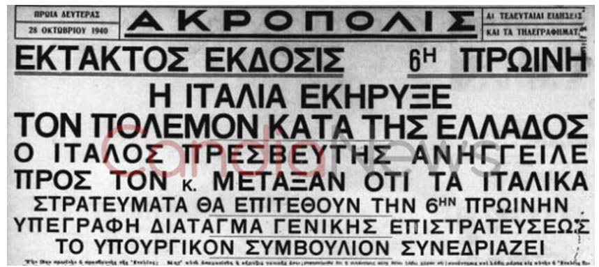Στις 28 Οκτωβρίου 1940, ημέρα Δευτέρα και ώρα 05.30 πρωινή, η φασιστική Ιταλία του Μουσολίνι, σύμμαχος του Χίτλερ, κήρυξε τον πόλεμο εναντίον της Ελλάδας. Κήρυξε τον πόλεμο, επειδή ο Πρωθυπουργός της Ελλάδος απάντησε ΟΧΙ στις κατακτητικές της απαιτήσεις.