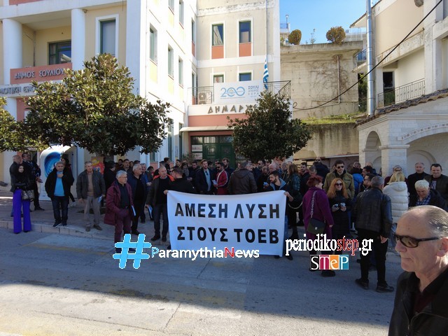 Η πρώτη κινητοποίηση, καθώς αν δεν λυθεί το πρόβλημα θα ακολουθήσουν και άλλες, για το πρόβλημα με το χρέος του ΤΟΕΒ στην ΔΕΗ, πραγματοποιήθηκε σήμερα μπροστά από το δημαρχείο Σουλίου.