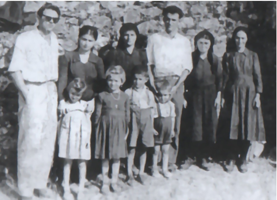 Από τα αριστερά τα παιδιά : Η Χρυσούλα Σταυροπούλου, η Φρειδερίκη Αηδόνη με τον Ανδρέα Αηδόνη και ο Τάκης Σταυρόπουλος. »