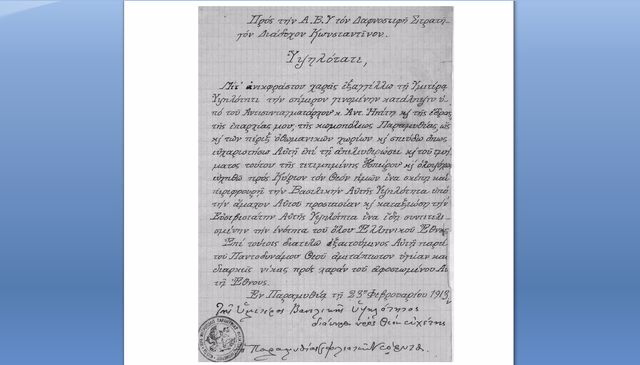 – Τηλεγράφημα αντισυνταγματάρχη Ηπίτη προς το Στατηγό Διάδοχο Κωνσταντίνο :