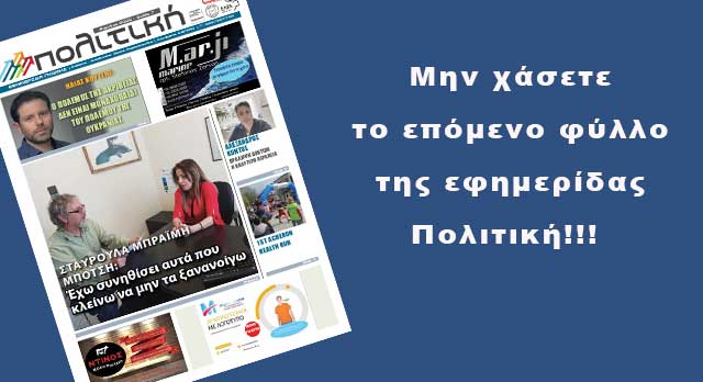 Κυκλοφορεί την Μεγάλη Εβδομάδα η εφημερίδα Πολιτική. Μην την χάσετε!!!