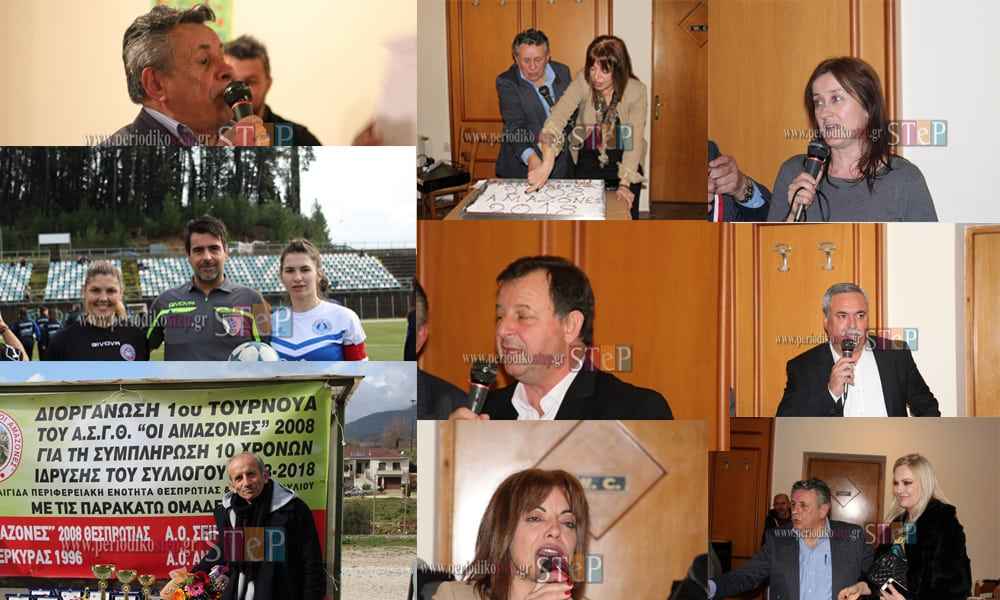 Τα δέκα της χρόνια γιόρτασε η γυναικεία ομάδα της Θεσπρωτίας, οι Αμαζόνες, που ιδρύθηκαν το 2008. Μάλιστα ήταν η πρώτη γυναικεία ομάδα που ιδρύθηκε στον νομό και η μοναδική και σήμερα!!! Ψυχή της ομάδας ο πρόεδρος της Σωτήρης Περετζούκας, ένας άνθρωπος που προσπαθεί να κρατήσει την ομάδα με την αγάπη του για το ποδόσφαιρο, το πάθος του και την εργατικότητα του. Η ομάδα σε αυτά τα δέκα χρόνια κατάφερε να πάρει τρία βραβεία ήθους, σε τρεις συνεχόμενες χρονιές όπου η ομάδα δεν δέχθηκε ούτε μία κίτρινη κάρτα!!!