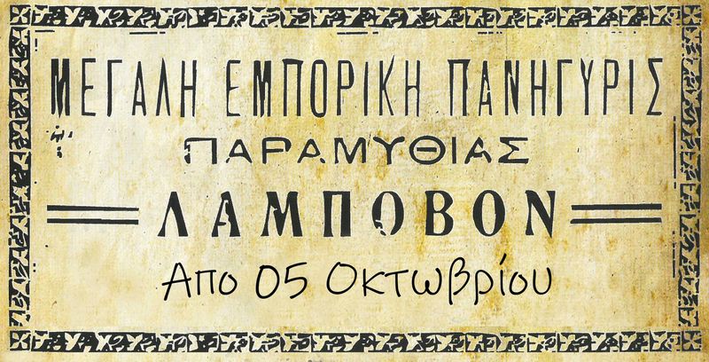 Η Επιτροπή Λαμπόβου, σύμφωνα με όσα στην 65/2022 απόφαση Δημοτικού Συμβουλίου (Κανονισμός Λαμπόβου) αναφέρονται, ανακοινώνει ότι την ΔΕΥΤΕΡΑ 15/09/2025 και ώρα 08:30, θα πραγματοποιηθεί δημόσια κλήρωση μεταξύ των αιτούντων – ενδιαφερόμενων, στην αίθουσα Δημοτικού Συμβουλίου (Κ.Καραμανλή 179 Παραμυθιά), για την απόδοση (εκμίσθωση) 2 ψησταριών στην Εμποροπανήγυρη του Λαμπόβου για το έτος 2025.