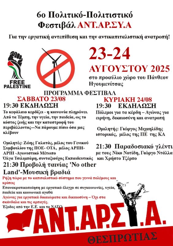 Η περιβαλλοντική καταστροφή βαφτίζεται «πράσινη μετάβαση» και «ενεργειακή κάλυψη» ενώ στην πραγματικότητα γίνεται για τα κέρδη λίγων: ανεμογεννήτριες, ΑΠΕ και μεγάλα έργα επιβάλλονται πάνω στις τοπικές κοινωνίες και στη φύση.