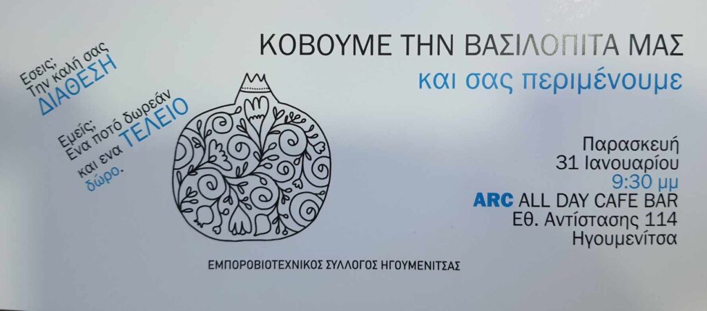 Πρόσκληση του εμπορικού συλλόγου Ηγουμενίτσας για την κοπή Βασιλόπιτας