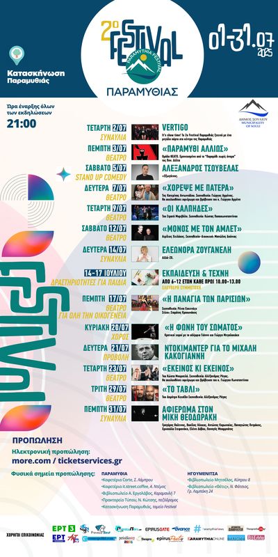 Σας προσκαλούμε στο 2ο Festival Παραμυθιάς, το μεγαλύτερο πολιτιστικό γεγονός της Θεσπρωτίας, από την 1η έως τις 31 Ιουλίου 2025.