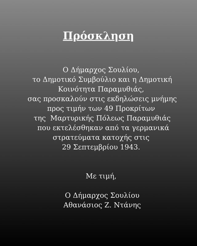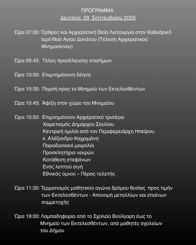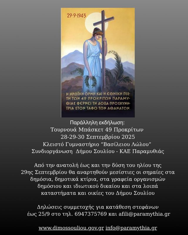 Το πρόγραμμα της εκδήλωσης μνήμης για τους 49 Πρόκριτους Παραμυθιάς 20 Σεπτεμβρίου 202520 Σεπτεμβρίου 2025 periodiko Το πρόγραμμα της εκδήλωσης μνήμης για τους 49 Πρόκριτους Παραμυθιάς